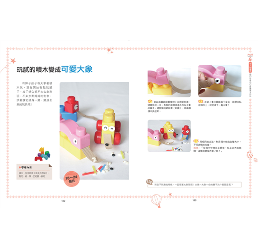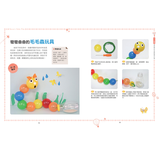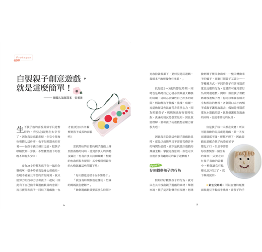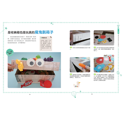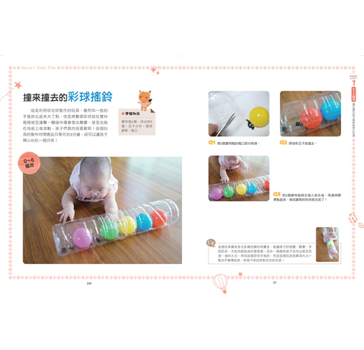 因高齡生產又全職照顧孩子,育兒之路總是覺得心力交瘁,後來突發奇想用生活周遭都有的超市傳單紙、食材、回收物品等,用這些能輕易取得的材料,做出超簡單又適合孩子的玩具,不僅孩子玩得開心、媽媽也輕鬆許多。