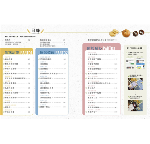 36道食譜涵蓋「蛋糕甜點」、「麵包披薩」、「餅乾點心」三大類,