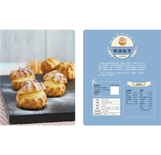 36道涵蓋「蛋糕甜點」、「麵包披薩」、「餅乾點心」三大類,舉凡迷人的蜂蜜蛋糕、好吃的奶油泡芙、營養的全麥麵包、大排長龍的焦糖千層酥、牛軋糖等,網路受歡迎的、年節必買的、家人小孩愛吃的甜點,這一本都有!