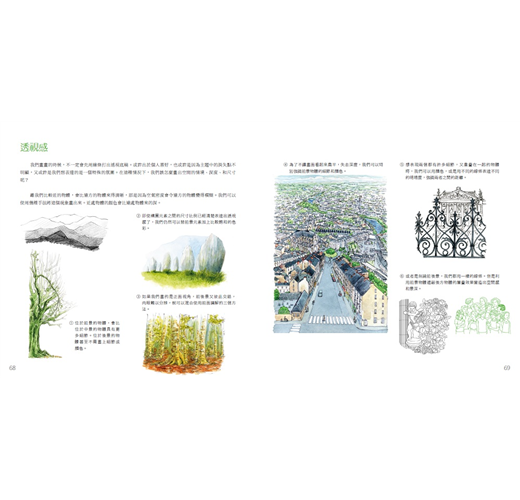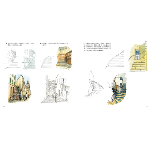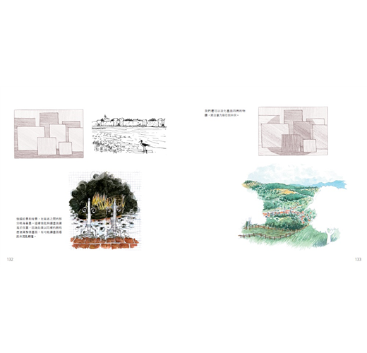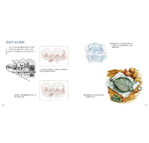 本書有許多速寫圖,步驟詳實,目的在於幫助你了解每個主題針對的構圖和透視方法,以及下筆前你應該問自己的問題。你也可以創造自己的小速寫圖,找到你自己最喜歡繪畫的方式。