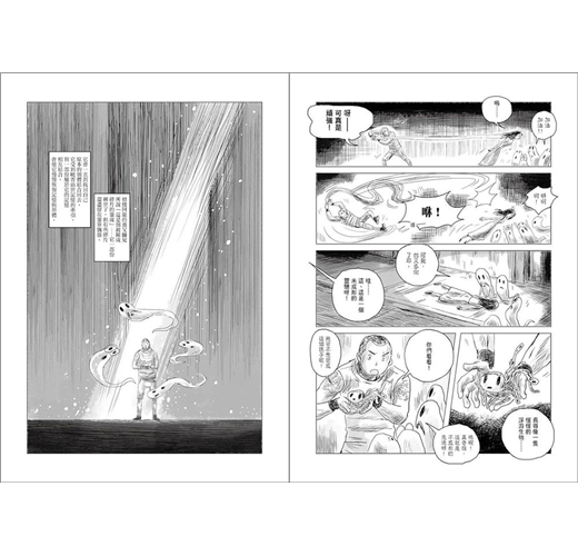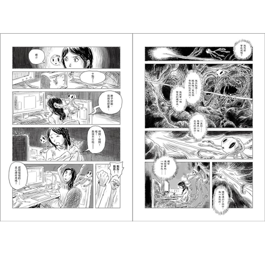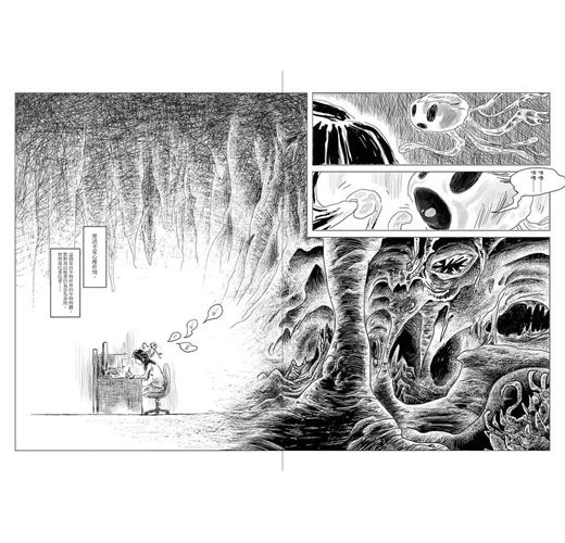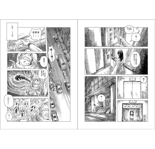 但漫畫家沒有這個包袱,他可以完全依照自己的媒材創作,什麼是執念?執念的面貌如何?存在狀態如何?他可以非常純淨地去畫這個。我覺得這是非常有意思的。除了對角色設計之外的差異,還有兩個媒材不同的互動,那個碰撞,我相信這是很美好的一刻。