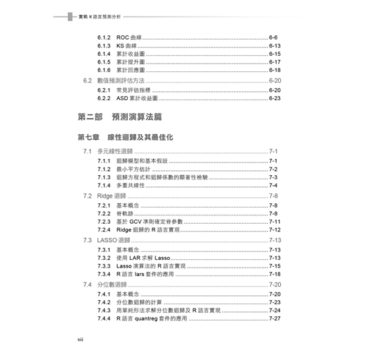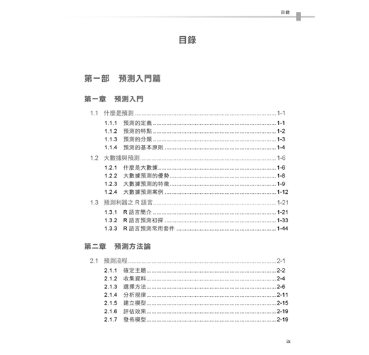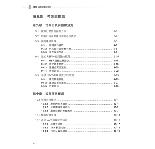 本書共分三部份。第一部分講預測基礎,主要涵蓋預測概念理解、預測方法論、分析方法、特徵技術及評價,讀者透過這部份內容的學習,可以掌握進行預測的基本步驟和方法思路;第二部份講預測演算法,該部份包含多元迴歸分析、複雜迴歸分析及進階演算法,內容比較有難度,需要細心體會;第三部份講預測案例,包括短期日負荷曲線預測和股票價格預測兩個實例,讀者可以了解到實施預測時需要留意的技術細節。