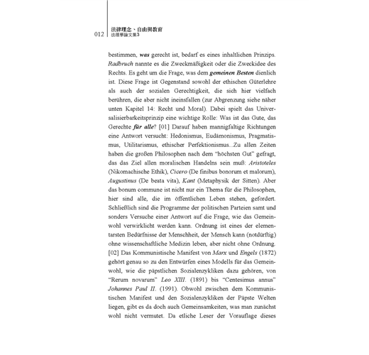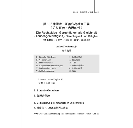 正義作為法律的理念是人類共同生活的重要概念,雖然每一文化區域有自己的法律觀與法律生活,但有著一共同目標:盡可能追求一理想的共同生活。同時,自由與平等為法治國家的核心思想,且呈現在各個不同的共同生活之中。
