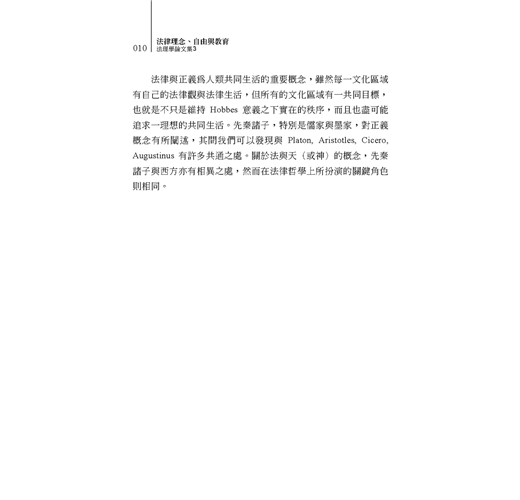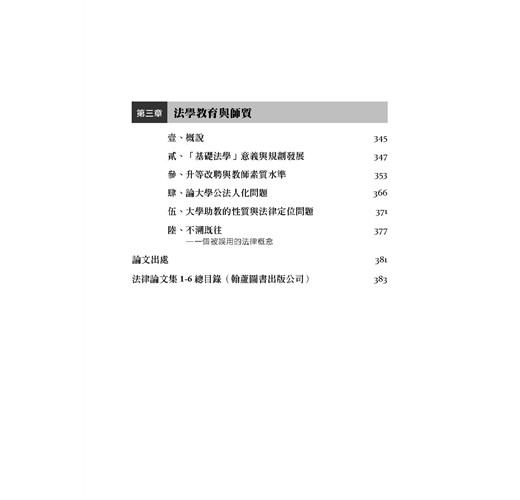 法理學論文系列第三本,以法律的核心理念「正義」為基調,延伸出自由與平等的價值,點出法律最初的存在意義,進而研討臺灣司法為人詬病的根基─法學教育的缺失。