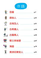本書共分為8個章節,包括恐龍、原始人、古埃及人、古希臘人、古羅馬人、騎士與城堡、海盜及美洲印第安人。