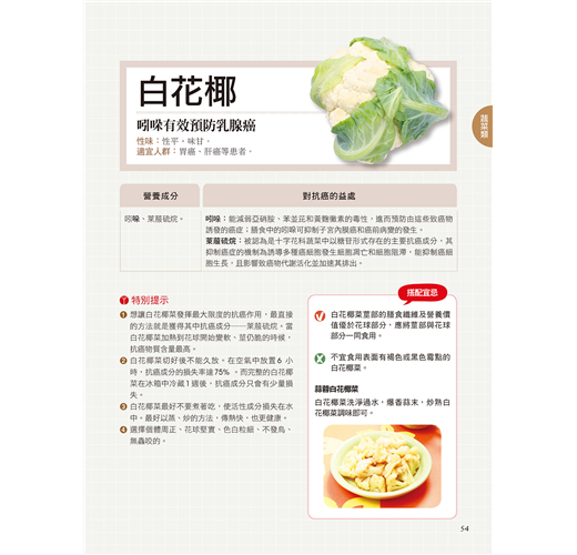 本書詳細介紹抗癌明星食材的營養成分及搭配宜忌,並精心設計出近100道抗癌料理,