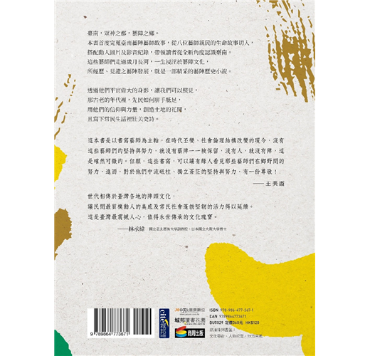 八位藝師的生命故事,臺南人的信仰與力量在府城大街小巷,在書頁字裡行間,驚豔一齣齣凝聚生命熱力的演出。