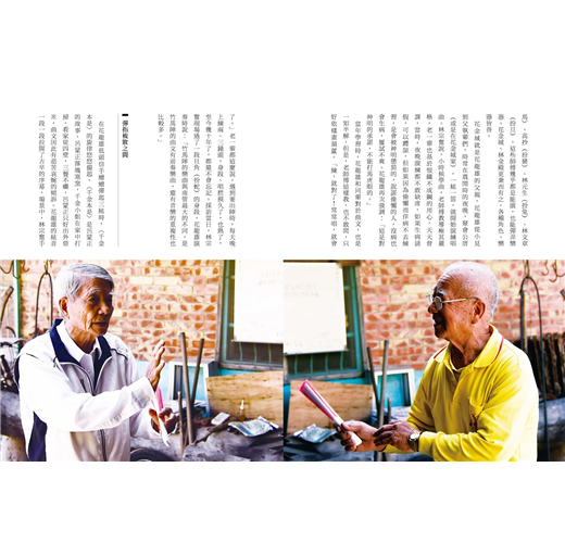 這本書是以書寫藝師為主軸,在時代丕變、社會倫理結構改變的現今,沒有這些藝師們的堅持與努力,就沒有藝陣一一被保留,沒有人,就沒有陣,這是確然可徵的!當我在落稿這些文字時,也憶起踏查過程中,與藝師們建立的難忘的友情。但願,這些書寫,可以讓有緣人看見那些藝師們在鄉野間的努力,進而,對於他們中流砥柱、獨立蒼茫的堅持與努力,有一份尊敬!