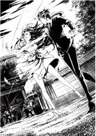 就在我腦中剛這麼想的瞬間,背後正要關上的自動門驟然停止動作,而且發出了刺耳的聲響。轉頭一瞧,門縫之間夾著一條包覆在黑色絲襪中的長腿。不,正確來說那並不是腳被門縫夾住,而是腳的主人將門踹停了。