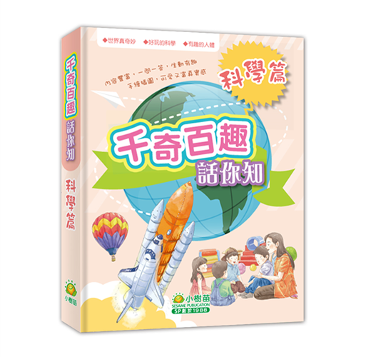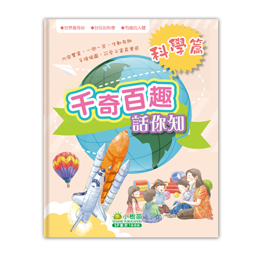 《千奇百趣話你知》全套3冊,每冊共有3個主題:科學篇——世界真奇妙、有趣的科學、神祕的人體;生態篇——哺乳類動物、植物樂園、遠古大發現;自然篇——鳥類與海洋動物、昆蟲世界、自然與地理。