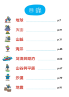 本書共分為8個章節,包括地球、火山、山脈、海洋、河流域湖泊、山谷與平原、沙漠及地震。