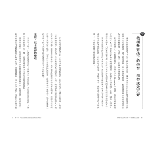請讓我先開門見山地說吧!「父母不該把孩子的學習全交給學校及補習班!」二○一二年,我的獨生女小堇由在地的大分縣立大分上野丘高中應屆考上哈佛大學,她從來沒有上過補習班,因為我重視「家庭學習」勝過一切。