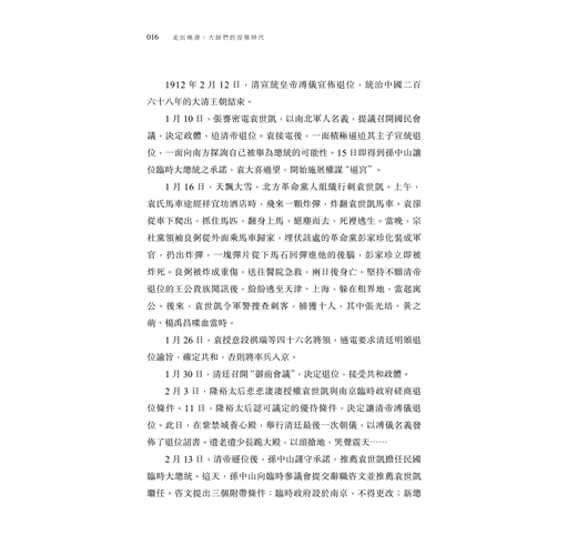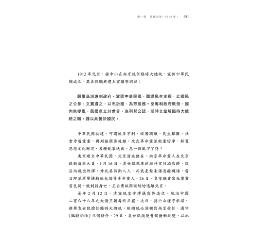 從上面枯燥而冗長的敘述中,讀者對中華民國元年應有了一個大概的了解。清廷退位,南北議和,中山讓位,舉國共和,歷史翻開了新的一頁,然而亂象頻頻,災難重重,各種政治力量在暗中較量,政局仍動盪詭異,雖為民國,而國民猶處在水深火熱之中。