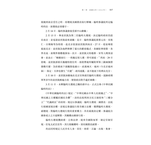 3 月11 日,未解臨時大總統之職的孫中山,正式公佈《中華民國臨時約法》。《中華民國臨時約法》規定:“中華民國由中華人民組織之”,“中華民國之主權屬於國民全體”。該約法按照西方民主制度和“三權分立”“代議政法”的原則,規定以參議院、臨時大總統、國務員、法院行使國家統治權。並規定參議院行使全國立法權,選擇臨時大總統、副總統,對臨時大總統行使的重要權力,具有最後決定權。參議院自國會成立之日起解散。其職權由國會行使。