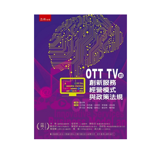 在本書的內容架構方面,為了讓讀者對 OTT TV有基本的認識,第一章先針對 OTT TV的定義、發展現況及經營模式進行分析,並提出未來發展的關鍵成功因素。第二章綜合國內外面臨 OTT TV所帶來重大的影響,針對產業生態重要面向,包括 OTT TV與既有媒體市場融合發展、內容產製、 OTT TV訂戶 /收視流量、 OTT TV獲利 /營收以及相關政策法規等,探討對既有媒體之可能衝擊。第三章乃聚焦於國內外影音使用最新趨勢,談到近期使用者的轉變,例如追劇、社群互動及直播,同時舉例 OTT TV業者透過社群媒體經營觀眾關係,並說明跨平台監測與大數據的應用方向。