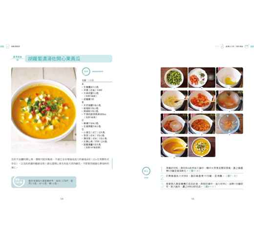 ․本書為營養均衡的全食物飲食,書中不含麵粉與不含精緻糖鹽的調味料、醬料與高湯全是手工自製,搭配低溫烹調法,吃得更安心健康。