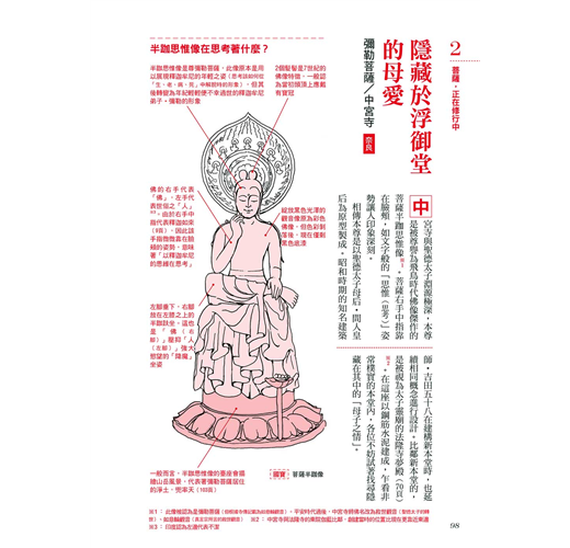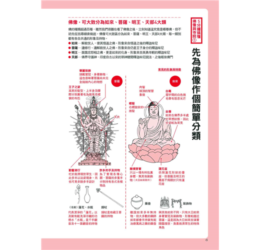 但是在初學者剛剛接觸相關領域時,往往都會碰到不少感到疑惑,又不知該從何理解的部分。「類似的佛像很多,總是無法將外觀姿態和名字聯想在一起」、「有希望實現的心願,不知道該向哪尊佛祈求才好」、「寺院建築看起來的確很美,想深入了解意涵卻不知道該從哪裡著手」……類似以上的問題,想必也是經常在剛對佛像及寺院藝術產生興趣的人身上發生。