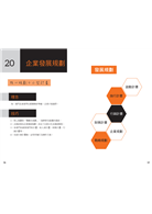 旅行需要指南,商戰需要策略,領導需要訓練,成功需要計畫,本書旨在提示各企業執行長們不同企業思維的形成過程及其結果,輔以分析圖片和資料圖表加以闡述,亦協助想培養下一世代執行長的企業們,更容易理解其中的精髓。