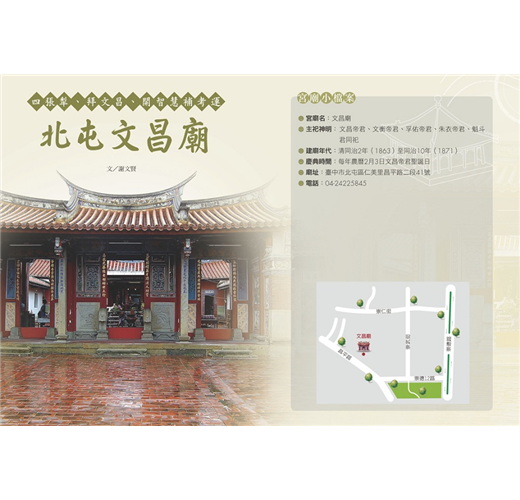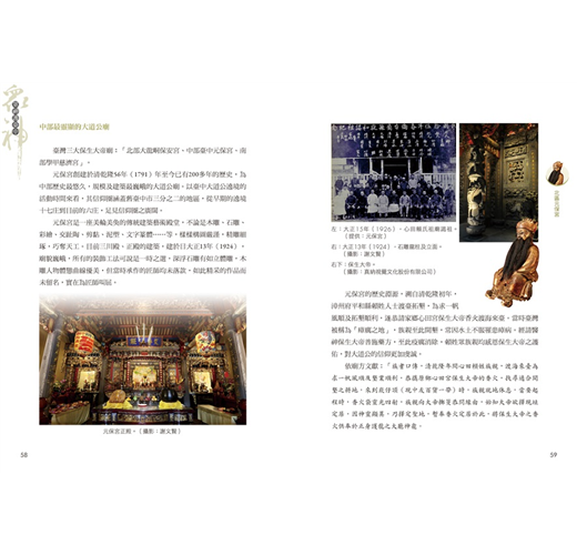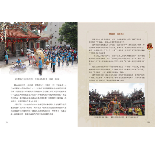 ◎繼《臺中媽祖蔭臺灣》,臺中市政府文化局出版系列書籍,紀錄大臺中各區14座宮廟,包括神明的傳說、靈驗事蹟、宮廟信仰中心的發跡過程、廟宇的建築風貌,以及當地民眾與宮廟間的互動與祭祀儀典,更有附近相關文化、美食景點,內容豐富。