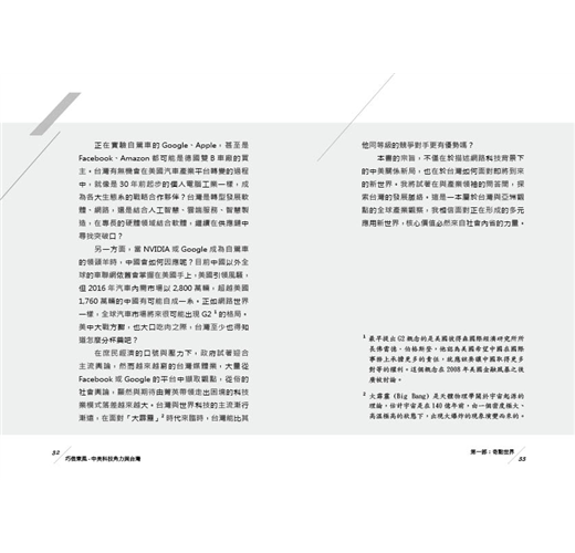 隔著太平洋,彼端是想要重拾美國榮光的老鷹,Made in America、Make America Great口號震天響,此端是想要創造中國盛世的巨龍,國家扶植、創投基金活躍不衰。Facebook、Google、Amazon、百度、阿里巴巴、騰訊等巨人制霸數位時代,亞太電子產業供應鏈日本、韓國與台灣都面臨變革圖存的關鍵時刻。