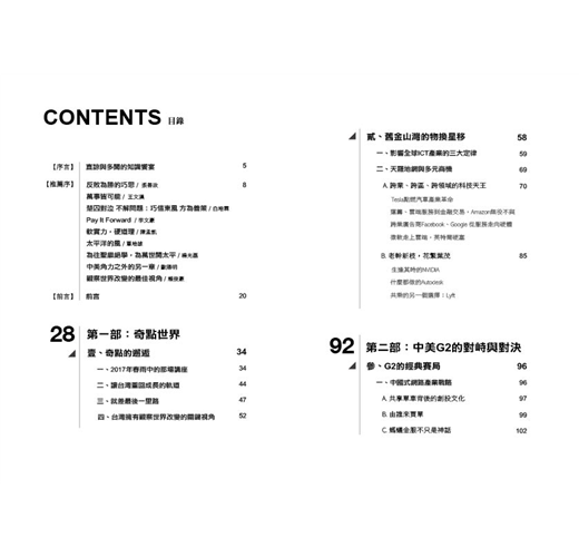 台灣在中美擠壓下幾乎失去在國際舞台折衝的空間,但台灣人全球趴趴走,也橫跨政經兩界。台灣在美國防禦中國的第一島鏈,以及全球產業鏈中都扮演要角,台美科技合作與經貿關係密切,台灣位處西太平洋中段,承接日本個人電腦產業的斷層,台商啟動中國ICT產業,而與韓國競合半世紀的電子業更是大家津津樂道的話題。從全球觀點,台灣是個奇蹟,也許很多人仍然習慣以管窺天,但台灣搶到了觀察全球ICT產業變化與中美對峙的最佳視角!未來也須理解中美兩強的戰略,借力使力,才能在下一波萬物聯網的時代繼續持盈保泰,扮演供應鏈上不可或缺的關鍵角色。
