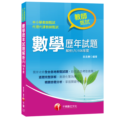 為使參加各級學校教師甄試的老師們,可以順利通過數學科考試。千華一直以來秉持幫助各位老師的用心,出版各年度數學科甄試試題與解析。