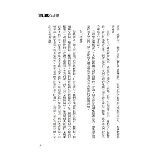 ■ 拋開高深莫測的理論,讓你從生動而有趣的文字中,學習到許多關於心理學的知識。