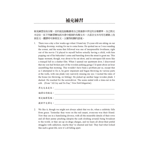 4. 書末附十篇短文作為練習,實際演練書中理論技巧。