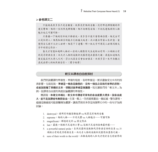 1. Melodies Their Composer Never Heard (1) 短文:軟文本譯者自由度探討