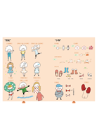 ◎〔活用〕各種插圖的活用及延伸,不論是角色或物品,換個角度、姿勢,或是顏色及畫筆就能呈現風味不同的可愛樣貌。