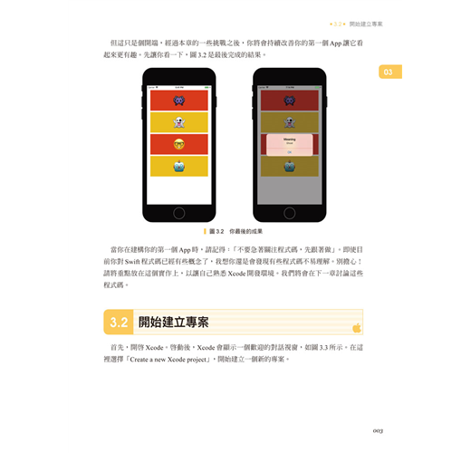 「有見解、實用與學習動機。這本書充滿知識性與有深度的主題,書中針對iOS開發的各個面向提供了提示與技巧,並鼓勵學生/讀者能夠持續往前,不會害怕深入理解觀念,真的是太棒了!」—Moin Ahmad,Guess Animals作者
