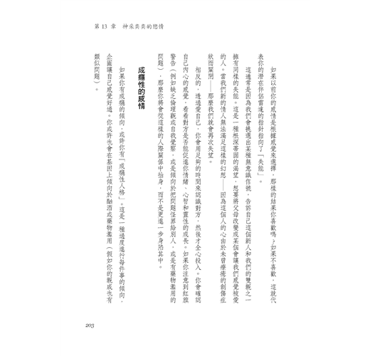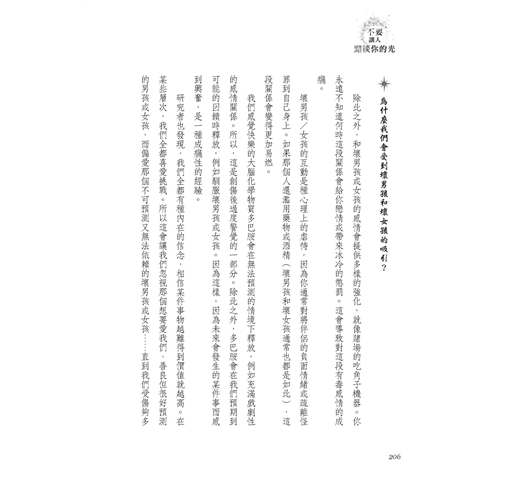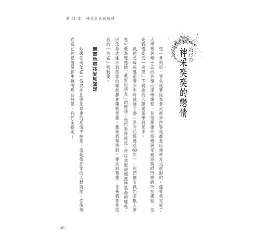 坦白說,這本書來得真巧,寫著推薦序的同時,我也恰逢療癒內在對情感不信任、沒有安全感的過程。原本以為自己在這方面已經痊癒的差不多了,但經由我吸引的對象,經由我想要抓取掌控對方的愛,我發現自己仍需繼續療癒!此書幫助我看見自己情感糾結的盲點,瞭解是過往的創傷讓我吸引了不合適的對象,幫助我更快速的斷捨離。
