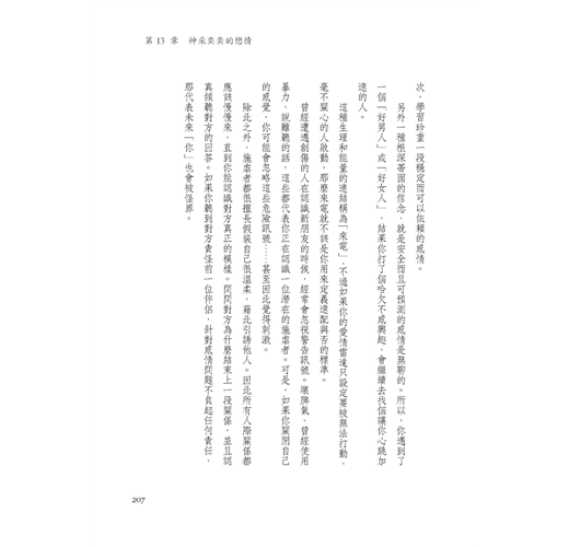 4.本書給予在人際互動上,對於家人、愛情、友情有過負面經驗的人,許多實際有用的應對方式與解析,協助讀者去發展「健康」的朋友或伴侶關係。