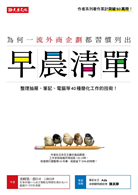 美崎榮一郎分析自己的工作模式,發現想要提升效率、每天只需上班5小時,就得從列出「早晨清單」減少出錯開始,進而有效管理周遭的事物、資訊、email、人際關係等。書中提供 40種不浪費時間、簡化工作的技巧,你只要花一小時看完本書,就能超速處理繁雜工作,並展現驚人成效!