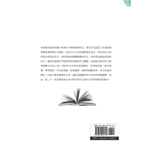 本書薈萃雲南省幾十所著名中學的優秀作文。學生作文從近三年或即將畢業的優秀學生中選取,尤其以2013年的應屆學生為主。學生的作文有的是高考高分作文,有的是參加競賽獲獎的作文,有的是為應試而寫的作文,還有的是學生平時所寫的喜愛的作文體裁。 此書結合高中作文教學實際共分為八章:材料作文中的約束與期待、思考與思想、歷史情懷、學習經典、作文新思維、情景關系、描寫的絢麗多彩、作文的起承轉合。內容不僅有優秀的文章,還有老師關於作文的寫作要領講解,突出「教」字,旨在幫助廣大高中學生的作文寫作水平得到實質的提升。