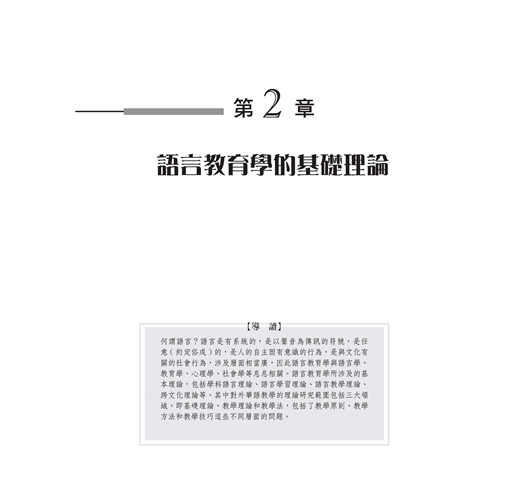 語言教學的內容是語言,如何教語言必然涉及到人們對人類語言和語言活動本質的認識,首先要弄清語言是什麼,接續則是如何教等課題。本書共分十二章,第一章緒論及第二章語言教育學的基礎理論,首先探討為何教的問題。第二語言教學和第一語言教學都是語言教學,存在著共同的語言學習規律,但由於教學對象、教學環境以及學習者文化背景等方面的不同,第二語言教學與第一語言的教學又存在著一定的差異。