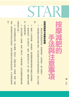 其實,想減肥的朋友們,除了控制飲食和做運動之外,還有一種不用費力就能瘦的減肥方法,那就是穴道按摩減肥法。它的原理就像是「抽脂」、「埋線」的原理一樣,卻不需你去動刀做手術,就能幫助改善血液循環,去除身體多餘的脂肪、消除浮腫。你只需要在每晚洗澡或者坐下來看電視時,動動手指頭,你就能一邊娛樂一邊瘦局部。這就是本書所要告訴大家的「按摩減肥」法。