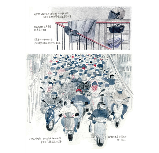 有些事情是可以做一輩子的,比如說吃飯,睡覺,養貓還有畫畫。因為喜愛細節的緣故,所以畫畫的速度很慢,一筆一畫細細的描繪街道上的每一個角落、每一個生物的互動、互相牽引的空氣氛圍……若不是有可愛的編輯催稿,恐怕會沒完沒了的繼續畫下去。作品有插畫、紙藝、袖珍藝術、漫畫、動畫、甚至有裝置藝術,看似不同的藝術媒介,卻都是在「記錄歷史」,光這些事就足夠忙一輩子了。