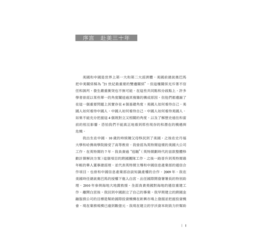 當年,父親移民去美國,我也有幸成為改革開放後第一批跟隨父母去美國讀書的孩子。通過自身的努力,我在美國上最好的大學,進最好的企業,接觸到美國最前沿的高科技理念和創新思維,還曾在美國白宮工作,回國後又能成功創立跨國公司,有機會成為連接中國和美國之間經濟與文化的橋樑。這是我所走過的路,其中有挫折與失敗,也有很多的成功經驗。每年中國有400 萬人去美國,其中去美國留學的就有40萬人,我個人的一些經歷和總結可能對其中很多人會有幫助,所以我希望對所有想要或將要成為國際化領袖的人分享這一切,更希望幫助他們接觸和進入美國主流社會的圈子。在這本書中我也會結合個人的經歷,分享每個家長和孩子都會感興趣和關心的事情。以下是我想與大家分享的內容。