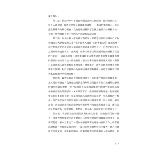 第三點,作為哈佛大學的校友面試官,我最想談談如何讓自己成為美國頂尖大學想要的人才。也許很多人寫過“如何考進名校”這類攻略,而我想要研究的是這些大學到底想要培養怎樣的人才,它們又如何去全方面地培養這些人才。在美國,很多大學都以培養國際化的領袖為自己的“使命”。以此為前提,這些美國頂尖大學希望培養的學生具備怎樣的個性和能力呢?這一點很重要。很少有書從這個層面深入探討,僅僅只是圍繞進入這些學校需要的成績、寫作水平、課外活動與經歷等硬性要求來展開,對於其實質的內容卻談得並不夠透徹。在這方面我可以與大家很好地分享我的經驗。