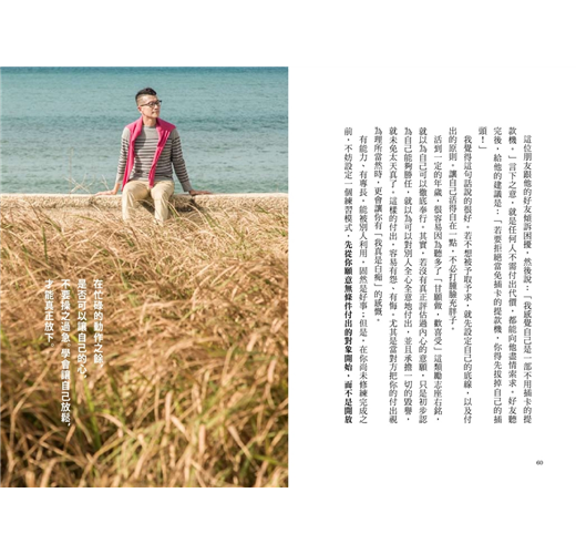 特別感謝國中同學李建宏義氣相挺,親自領軍,與郭元益婚紗美學館團隊,支援這本新書所有照片的拍攝。他曾經是我少年時期暗黑歲月的一盞光,讓我在一路放牛的學習路上,還能看到成長的盼望。不知不覺一起來到中年的我們,很少有機會共同回頭看當年的荒唐,以及聊著對未來那份只有中年男人才懂得的卑微夢想,帶著我們對生命既成熟又天真的浪漫。