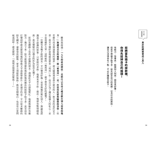 ◆真正的忠於自己,並非捨棄和別人的關係,而是讓自己的情緒不受這段關係影響。
