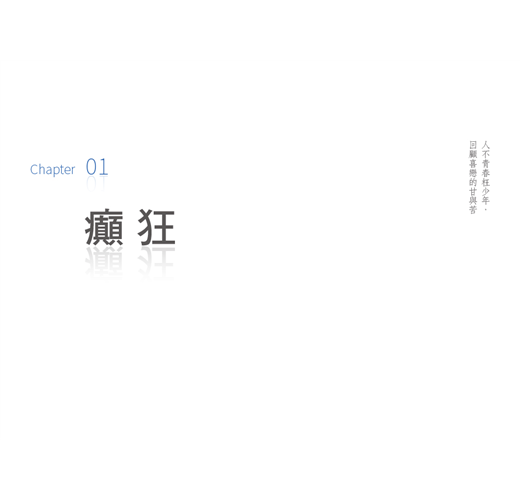 勉中/1995年生。高雄人,就讀交大爆肝電資系。大一為了設計班服開始自學電腦繪圖,從此愛上設計,踏上不務正業之路。大三時加入科技新創公司,身為電資系學生進科技公司卻不打code,反而是做UI/UX 設計。大四著迷於「一奈米的宇宙」,恣意在詩文與人生間繪出一幅幅充滿想像的風景。