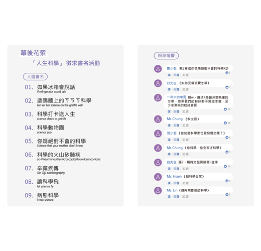 新的時代需要另一種新的知識傳遞與分享形式:透過臉書社群互動的型態,「一奈米的宇宙」為歷來知名科學家重塑了更具人性、更貼近生活的形象。試著想像: