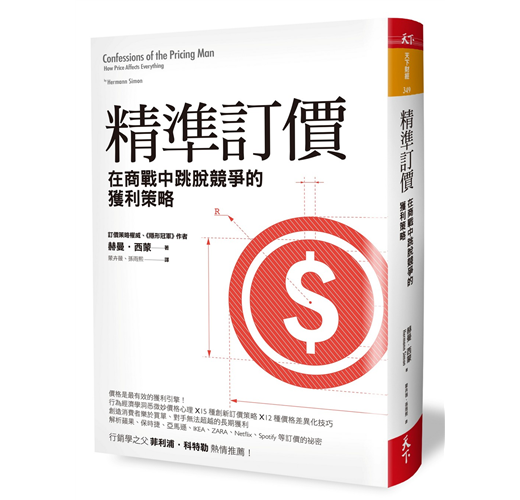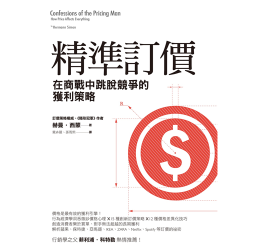 「赫曼‧西蒙是「訂價人」,而且是這個學科中的偉人。他在世界各大公司的訂價研究與實務上有超過四十年的經驗,擁有專業知識來幫助大中小型組織更精明的訂價。這本書將幫助你提升價格管理技巧、訂價策略與戰略,而且也能幫助你的公司。」