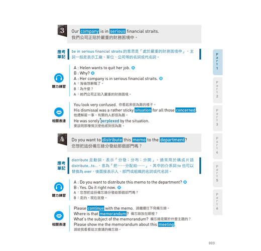 多益考題中常出現「換句話說」的答題選項。利用書中的「相關表達」,可學會與主題句相關的常用會話,面對變化選項也能從容應答。