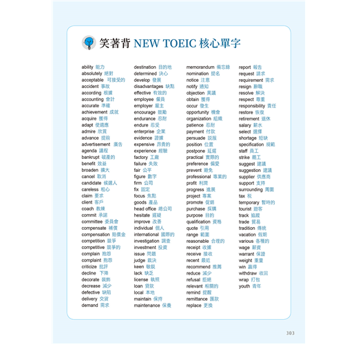 擁有足夠的字彙量,是看懂考題的第一步。本書特別標示出「常考核心字彙」以及「必備基礎字彙」,這些單字一定要熟記。
