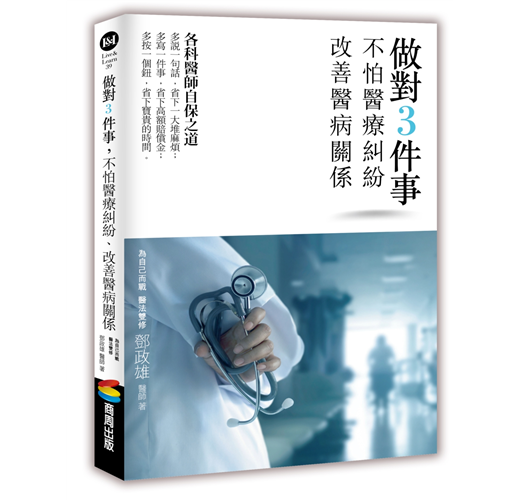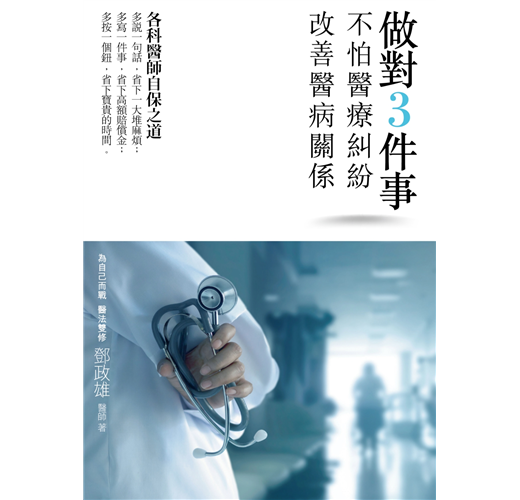 醫療糾紛日增,給醫師、護理師與院所造成很大壓力,甚至無法把心思完全放在「醫療」本身,而採取比較多的防衛性醫療。看了本書後恍然大悟,以新觀念改善醫病關係,醫師將可在安全的環境中發揮所長,醫治病患、拯救生命,為彼此創造雙贏。