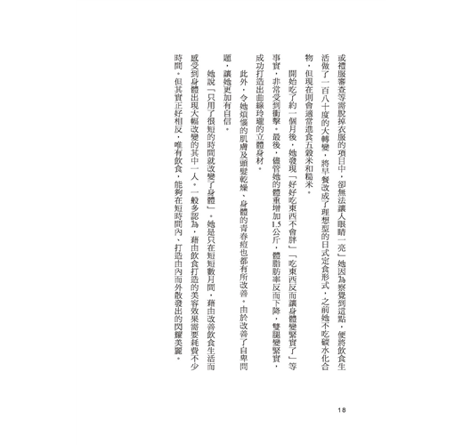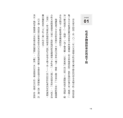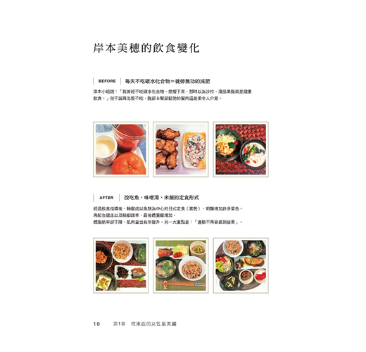 當然,她們很相信「減少卡路里才健康」,所以一開始也會有所抵抗:「吃這麼多的話會胖啊!」但是聽從建議的人,別說胖了,身體既變得緊實,漸漸地也變得很有活力、美得閃閃發光。