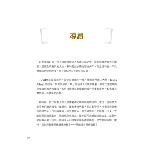 來到美國之前,我不曾想過會陷入股市狂熱之中,進而急劇改變我的職涯,並完全改變我的人生。我熱愛並攻讀物理許多年,而且認為有一天我會成為物理學教授。我不曾和股市有過任何瓜葛。